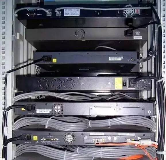 将网线分组,组数通常小于或等于机柜后面理线架的个数。将所有设备的电源线捆扎在一同,将插头从后面的通线孔拔出后,通过一个单独的理线架寻找各自的设备。